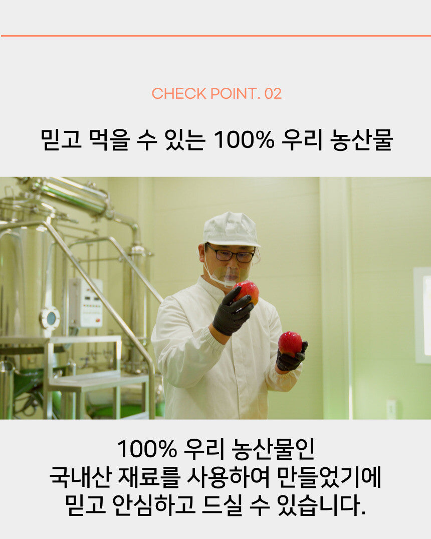 "ABC Vinegar" is made with a simple yet powerful formula: 70% Apple Cider Vinegar, 15% Beet, and 15% Carrot. These ingredients are carefully sourced and blended together to maintain the perfect balance of flavors and health benefits. We take pride in our commitment to natural ingredients, and "ABC Vinegar" contains no chemical additives. Our vinegars are proudly crafted in the pristine Hamyang region of South Korea, where a rich tradition of quality culinary products has been upheld for generations.