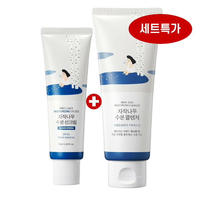 [라운드랩] 자작나무 수분 선크림 SPF 45 + 자작나무 수분 클렌저 세트 Birch Moisturizing Sunscreen SPF 45 + Birch Moisturizing Cleanser