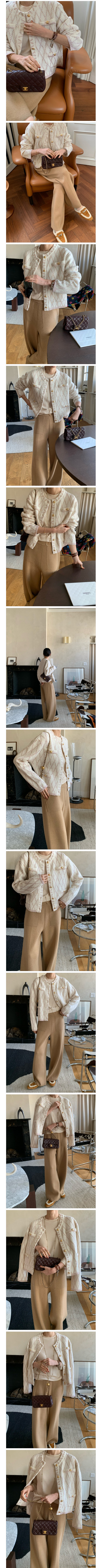 샤 텍스처 특유의 은은한 결감과 골드 버튼 디테일로